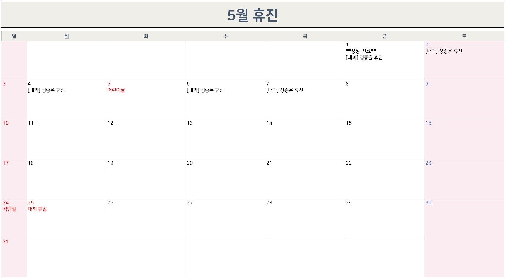 *Åä¿äÀÏ Áø·á´Â Áø·á°úº°·Î ±³´ë Áø·á°¡ ÀÌ·ç¾îÁö´Ï ÀüÈ ÈÄ ¹æ¹®ÇÏ½Ã¸é Æí¸®ÇÕ´Ï´Ù.