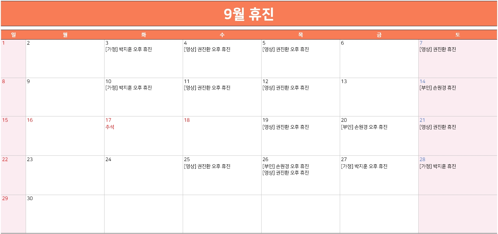 Á¦¸ñ 9¿ù ÈÞÁø ¾È³»(9/5 ±âÁØ)