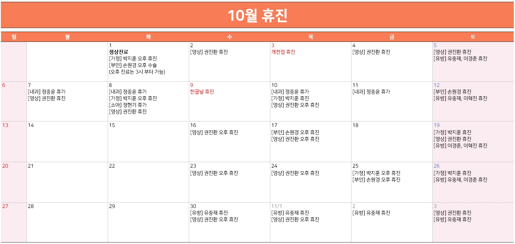 Á¦¸ñ 10¿ù ÈÞÁø ¾È³»(9/26 ±âÁØ)
