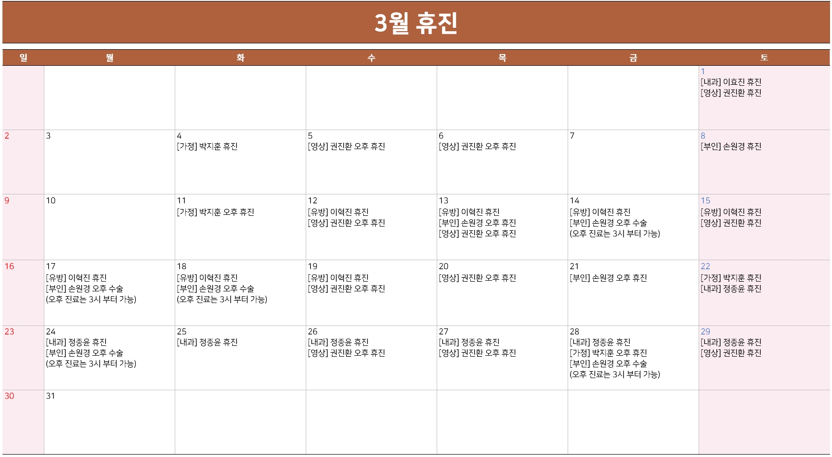 Á¦¸ñ 3¿ù ÈÞÁø ¾È³»(3/24 ±âÁØ)