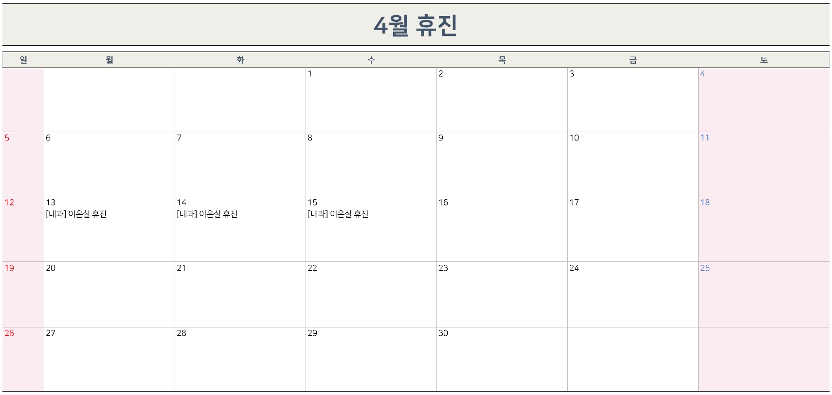 Á¦¸ñ 4¿ù ÈÞÁø ¾È³» (3/14 ±âÁØ)
