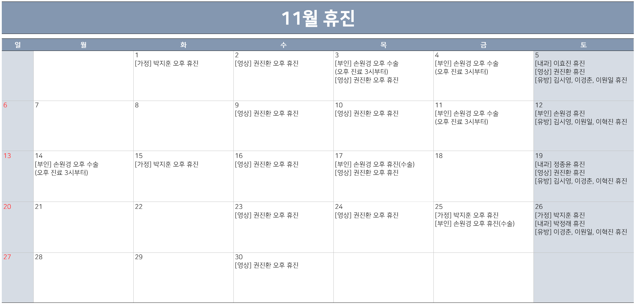 Á¦¸ñ 11¿ù ÈÞÁø ¾È³» (11/7 ±âÁØ)