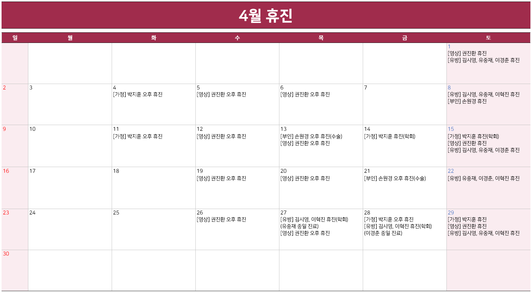 Á¦¸ñ 4¿ù ÈÞÁø ¾È³» (4/26 ±âÁØ)