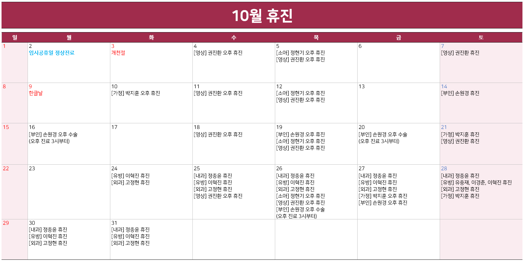 Á¦¸ñ 10¿ù ÈÞÁø ¾È³» (10/23 ±âÁØ)