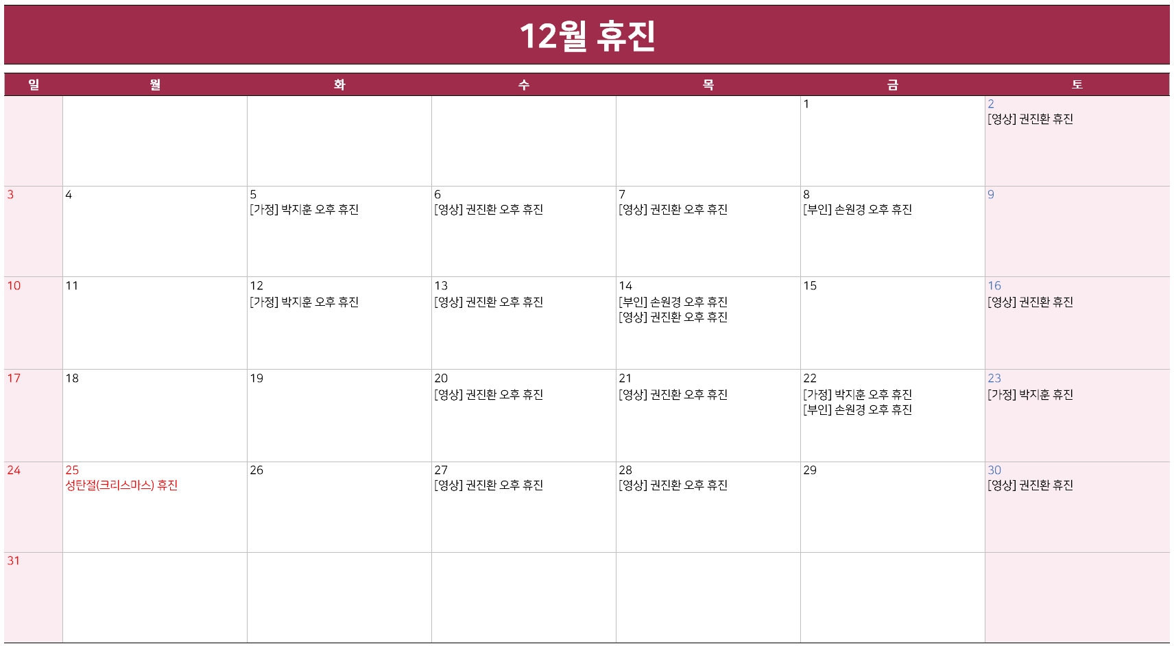Á¦¸ñ 12¿ù ÈÞÁø ¾È³» (12/2 ±âÁØ)