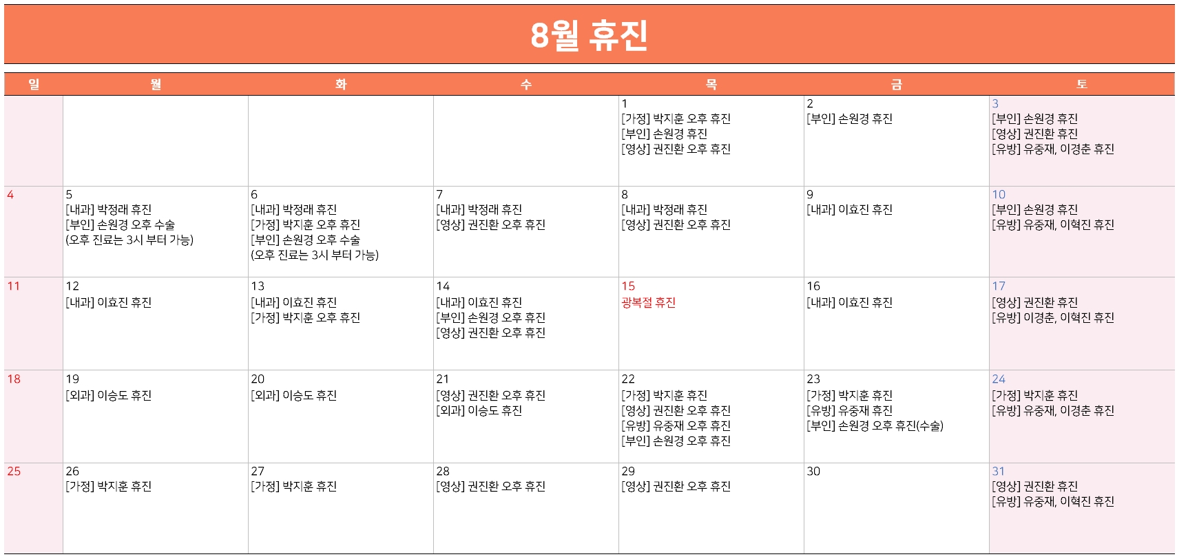 Á¦¸ñ 8¿ù ÈÞÁø ¾È³»(8/17 ±âÁØ)